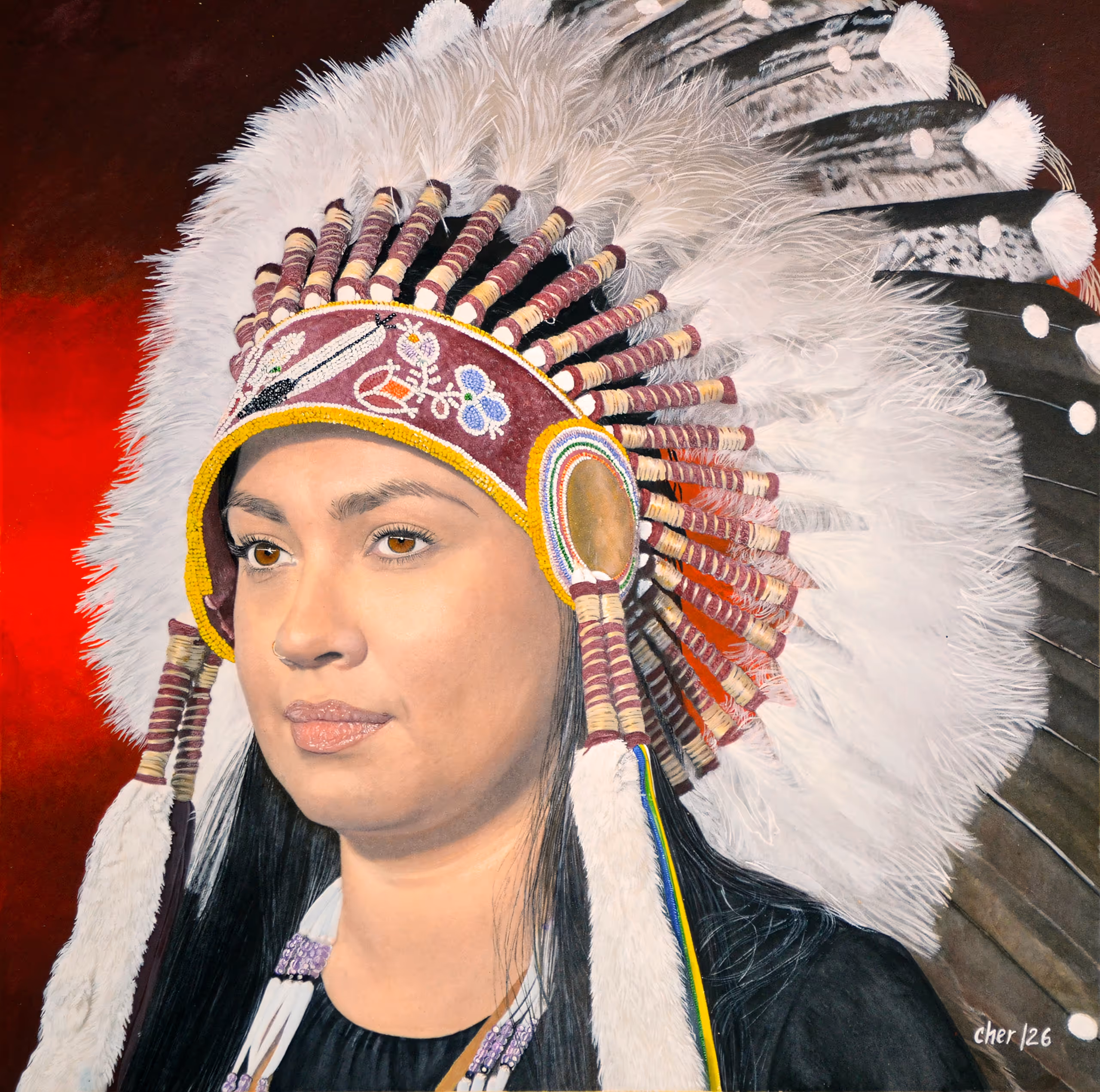 By age three, Cher was seldom found without a drawing tool in hand. She worked in pencil, charcoal, and ink over the years, picking up a paintbrush at the age of 35. Beginning with oil paints, she found her chosen mediums in acrylic, watercolor, and gouache, and her passion for hyperrealism.